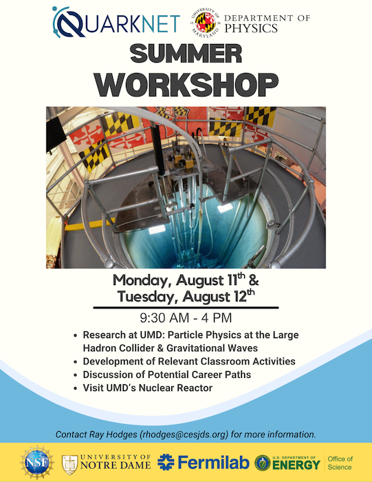 We also had Prof. Peter Shawhan from UMD give a talk on the Laser Interferometer Gravitational-Wave Observatory (LIGO), did a tour of UMD's nuclear reactor, irradiator, and linear accelerator, and discussed careers in basic science. The workshop wrapped up with a discussion of class implementation of the activities of the workshop. We worried that the python activities could end up being too challenging, but the teachers really appreciated them (especially the individualized tutoring) and planned to use pieces of those in their classroom.