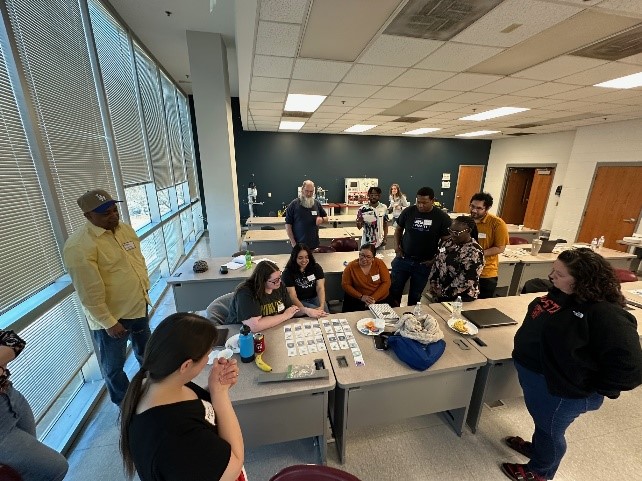 North Carolina A&T launched the first QuarkNet Center in North Carolina with a workshop on March 1st, 2025. This workshop was hosted by a team including long-time National QuarkNet Teacher Leaders Charlie Payne and Megan Alvord from the North Carolina School of Science and Math (NCSSM), QuarkNet National Staff Member Shane Wood, and NC A&T physics faculty members Shelly Lesher, Hallie Trauger, and Charlotte Wood. The workshop engaged twelve physics and physical science teachers from schools in Guilford, Durham, Wake, Randolph, and Stanly Counties in central North Carolina. The workshop included introductory hands-on examples from the Data Activities Portfolio, a research talk about Light Echoes of Type IA Supernovae from Dr. Charlotte Wood, and an introduction to particle physics detectors and data analysis. Teacher participants were enthusiastic about their first QuarkNet experience: all reported on a post-workshop survey that they were “likely” or “very likely” to use at least one activity in their classroom.